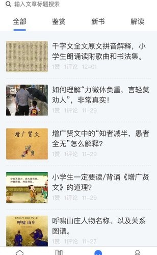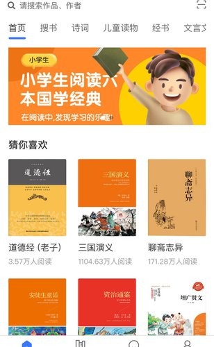 每日阅读经典是具有丰富资源的在线阅读软件,支持广泛的文献阅读以及重要读物都有涉及,包括道德经、三国演义、资治通鉴、增广贤文等都有提供,是一款不可多得的经典读物app,同时支持搜书、搜词功能,对于儿童读物、经书、文言文都有特别的分类版块,可以全方位满足不同人群的阅读需求.