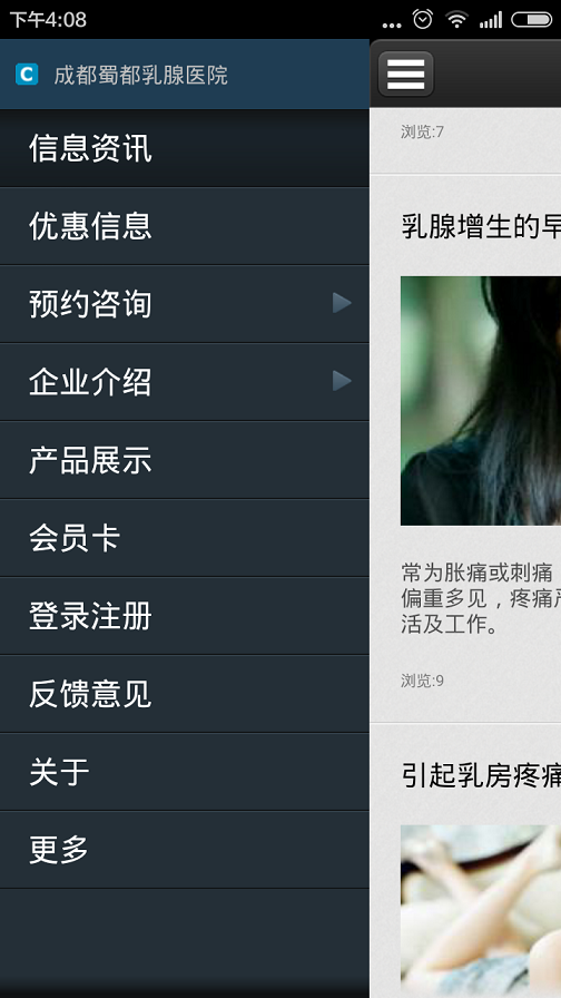 成都蜀都乳腺医院手机客户端,是一款专业的女性健康咨询软件。本软件集乳腺疾病筛查、诊断、治疗、康复保养、乳房整形美容及心理保健综合服务功能为一体,为用户提供诊断治疗乳腺增生、乳管内乳头状瘤、乳腺纤维腺瘤、乳腺囊肿、积乳囊肿、脂肪瘤、浆细胞乳腺炎、急慢性乳腺炎、乳腺结核、乳腺癌等各类良恶性乳腺疾病治疗服务。