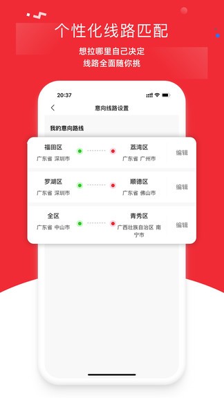 带车聘司机版app软件适合司机用户用来抢单,海量订单精准推送,一键轻松接单,可以发布自己的常用路线也可以添加路线,根据线路进行货物订单的匹配,省时又省力,众多货源任你挑,欢迎感兴趣的朋友下载体验。