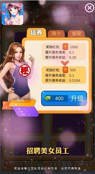 -升级店铺有红包拿,还能解锁美女技师服务,吸引更多客人体验。