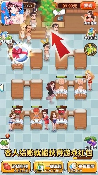 -同时游戏在经营模式上加入红包玩法,通过解锁美女技师招揽客人。