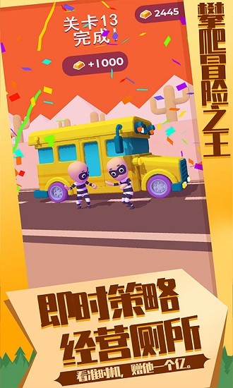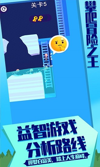 攀爬冒险之王是一款休闲类的手机游戏,你在游戏中需要逃离警察的追捕,努力向高出攀爬,游戏中还可以升级你的地盘,将这里盖上一栋别墅,游戏的画风十分可爱,让人一眼就爱上了,游戏过程也是非常有趣,能够让你笑得停不下来,你还在等什么呢,快点来下载玩玩吧!