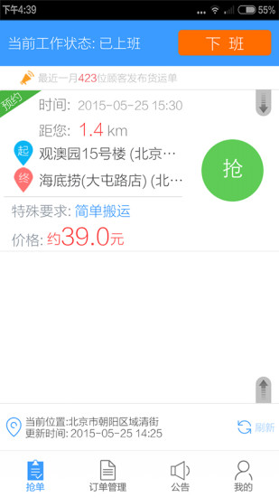 不辛苦等待,不凭运气抢单。更有订单详情功能,合理安排时间,让您接活更有效率。