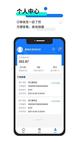【个人中心】订单收支一目了然,方便查看,高效便捷;