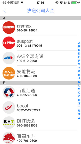 申通,顺丰,圆通,中通,汇通,韵达,天天快递,宅急送,增益,国通,佳吉,运通,优速;EMS,平邮,挂号信,邮政小包,邮政国内邮件,邮政国际邮件,国际e邮宝,国际EMS;安能物流,德邦物流,新邦物流,大田物流,越丰物流,恒路物流,华夏龙,盛辉物流;中邮物流,中铁物流,远成物流,信丰物流,天地华宇,嘉里物流,急先达,如风达;四川快优达,凡客订单,京东快递;EMS,FedEx,TNT,DHL,UPS,USPS,OnTrac,OCS,Royal Mail;Aramex,Austrialia Post,Bpost,Canada Post,Ctily-Link ,Hong Kong Post;爱尔兰邮政,比利时邮政,巴西邮政,瑞士邮政,瑞典邮政,日本邮政,荷兰邮政,丹麦邮政,英国皇家邮政,加拿大邮政,日日顺物流;