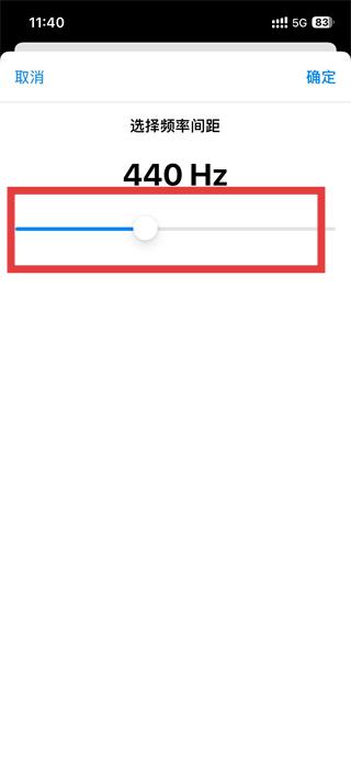 2、在弹出的选择频率间距窗口中,拖动滑块调整至需要的频率数值。