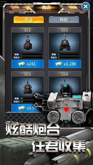 2.玩法简单,通过不断的战斗升级你的防御塔核武器装备。