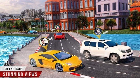 1、游戏提供了诸多的赛道,你可以自由的进行选择,在不同的场景中自由飙车