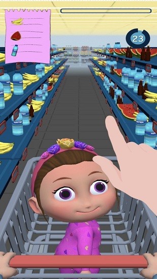 购物宝贝,带上可爱的小女孩一起去超市购物吧。把小小的她放在推车里,沿着整齐有序的货架不断前行,挑选满意的商品,在这期间可要好好关注小女孩的情况,不要让她调皮捣蛋破坏商品,那可是要赔钱的哦,还有控制她的购物欲望,毕竟预算资金是有限的,不能够随意挥霍一空。