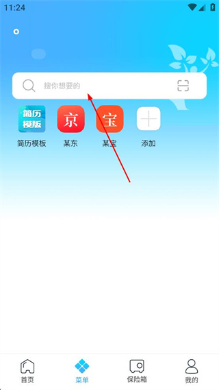 1、打开软件,点击菜单界面的搜索框,进入搜索输入界面。
