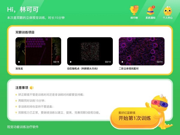 3、超多不同的视力训练方案可以使用,可根据弱势程度的不同自主选择;