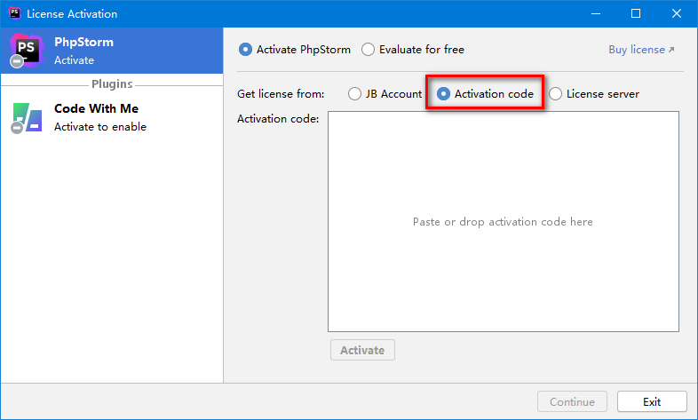 1、下载最新版phpstorm并且安装按成之后进入软件,此时会跳出一个激活界面: