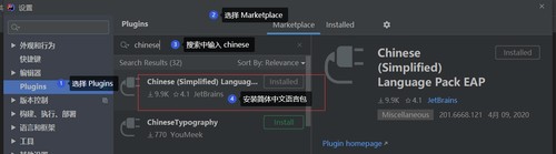 Ctrl+ALT+S 打开 Settings -> Plugins。