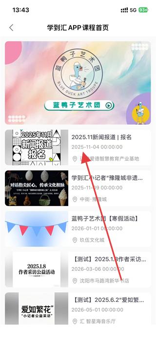 2、在学到汇APP课程首页中,点击需要报名的活动。