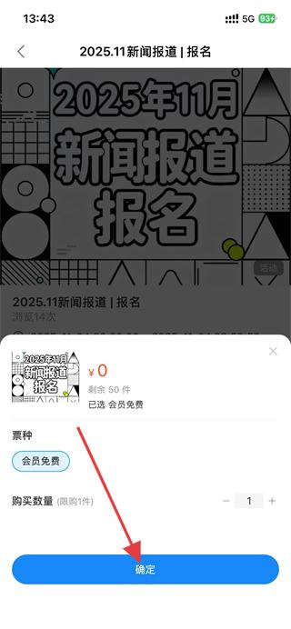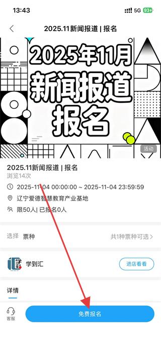 3、在活动详情页面中,点击下方的免费报名按钮。