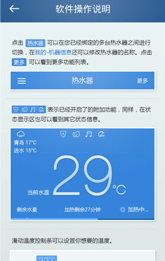 海尔电热水器app是专门智能控制热水器的应用软件。水是生命的源泉,孕育万物,水也是我们地球最宝贵的资源,没有水难以想象人类将何以生存。海尔电热水器app可以帮助我们智能用水,让我们养成节约用水的好习惯,不浪费多余的水资源。该应用能够使热水器更智能化,远程控制热水器的水温情况,预约热水,给生活带来无限便捷。欢迎下载使用~