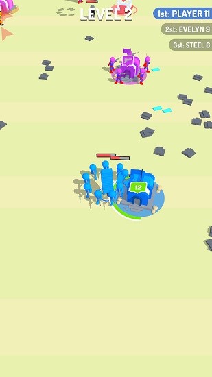 争霸大作战游戏十分休闲的动作射击防御游戏,游戏里有许多不同颜色的橡皮人士兵,玩家可以合成橡皮人,保护己方阵地,还要拿起枪支消灭其他人类。收集你的工艺品,并建造你的阵营,从敌人的进攻中生存下来!