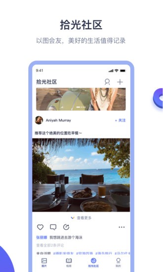 拾光纪为你打造最优质的线上相册平台,无论什么相片都可以上传进行备份,同时也支持拍摄的视频进行备份。你可以手动选择备份,也可以选择自动备份,连接wifi就能同步手机的手册了。还可以在线为你的相册进行分类,可以无限制创建文件夹。欢迎有需要的朋友下载使用!