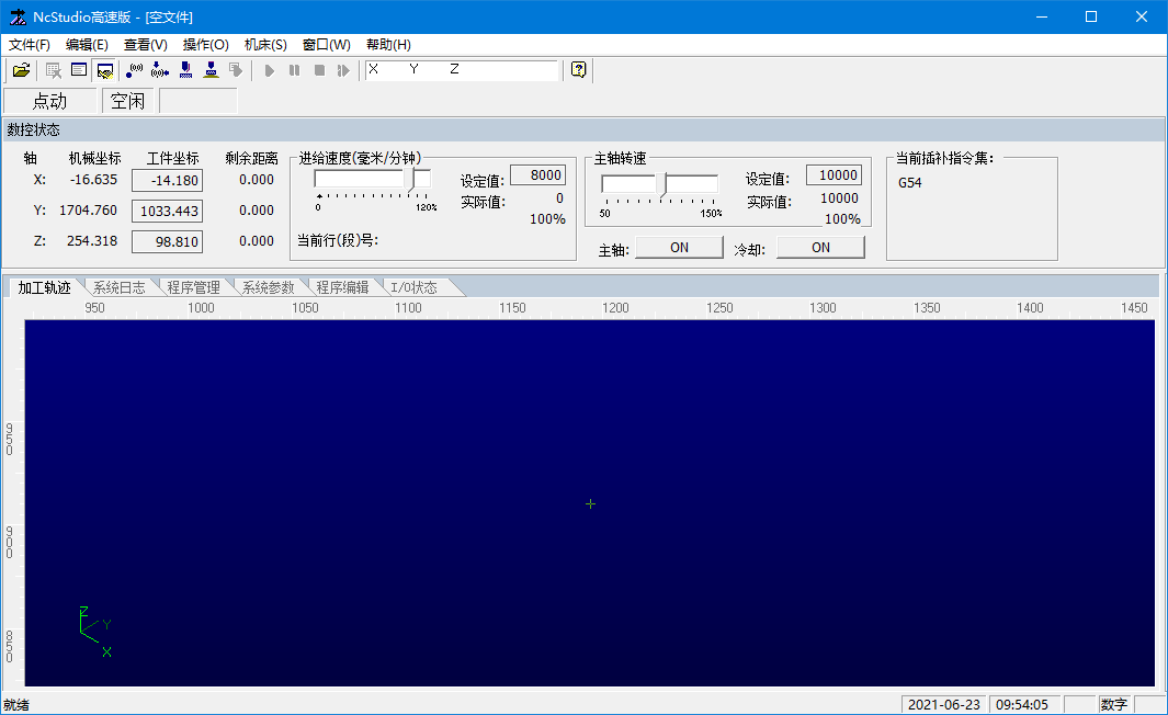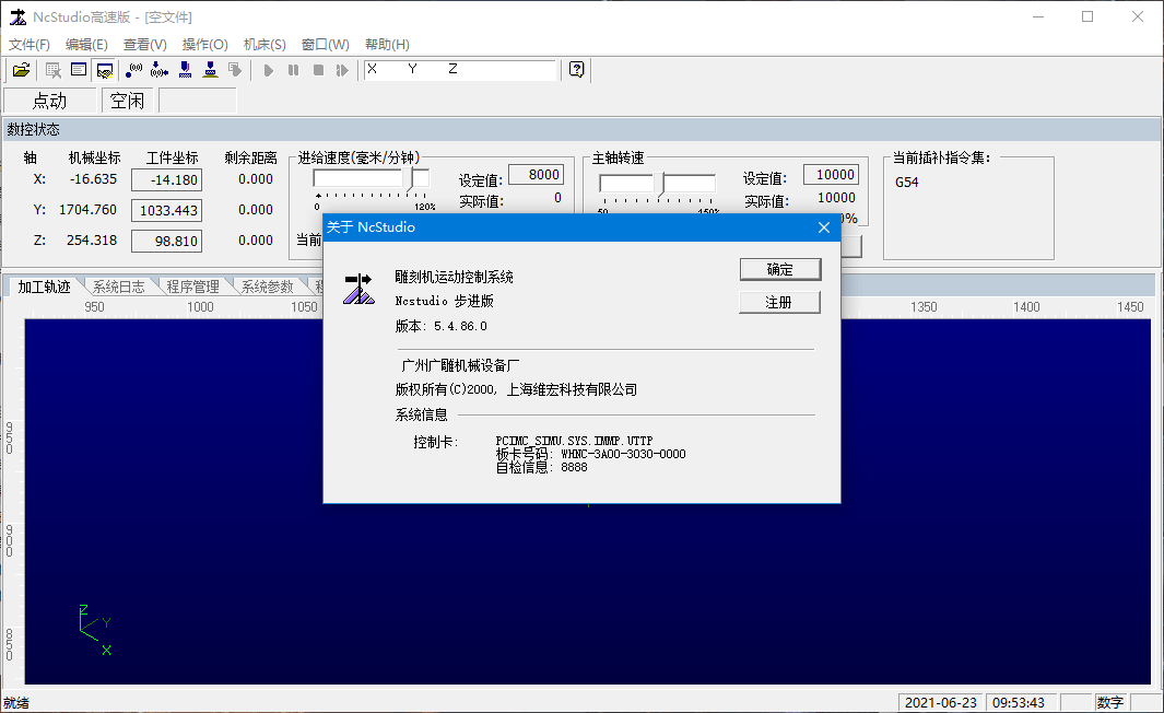 Ncstudio雕刻机数控系统是上海维宏电子科技股份有限公司自主开发的运动控制系统,该系统可以直接支持UG、mastercam、CASMATE、Art CAM、autocad、coreldraw等多种CAD/cam软件生成的G代码、PLT代码格式和精雕加工文件ENG代码格式、dxf文件格式。Ncstudio基于PC-Base,充分发挥32位计算和多任务的强大优势。用户界面具有操作简便可靠、简单易学的优点。该数控系统除具有自动、手动和参考点功能外,还具有模拟仿真、预测加工时间、预先装载加工轨迹、动态显示跟踪、断点记忆(程序跳段执行)等特有的功能。