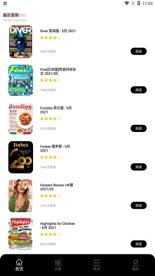 1、拥有几十种系列以及分类,建筑师、经典音乐杂志、时尚生活、女性时尚等,直接点击阅读即可,秒下载不花钱;
