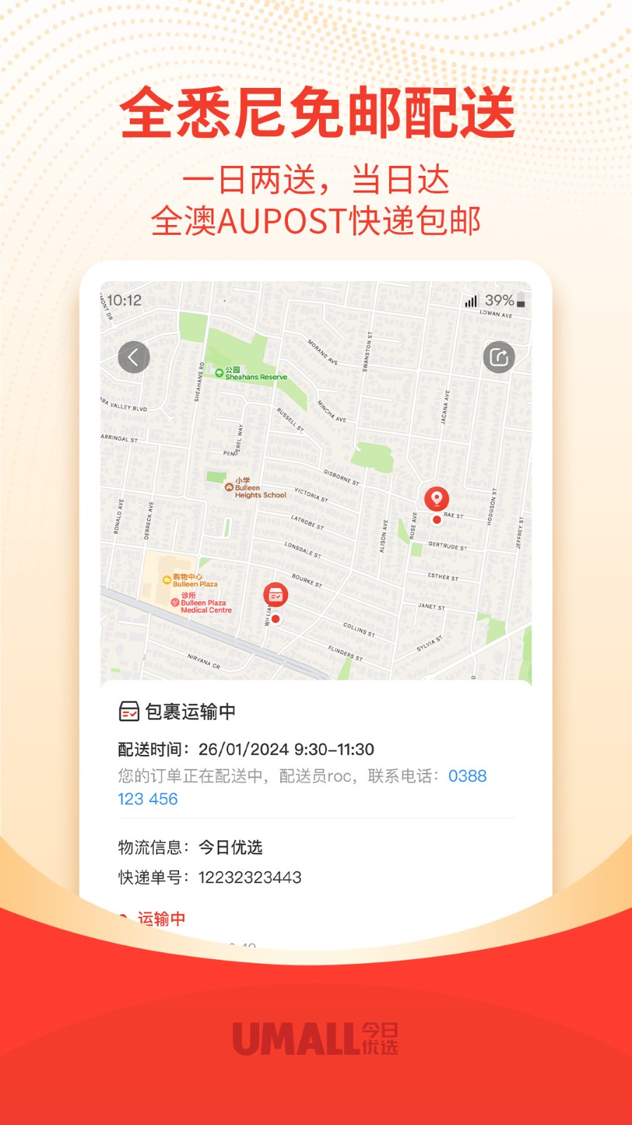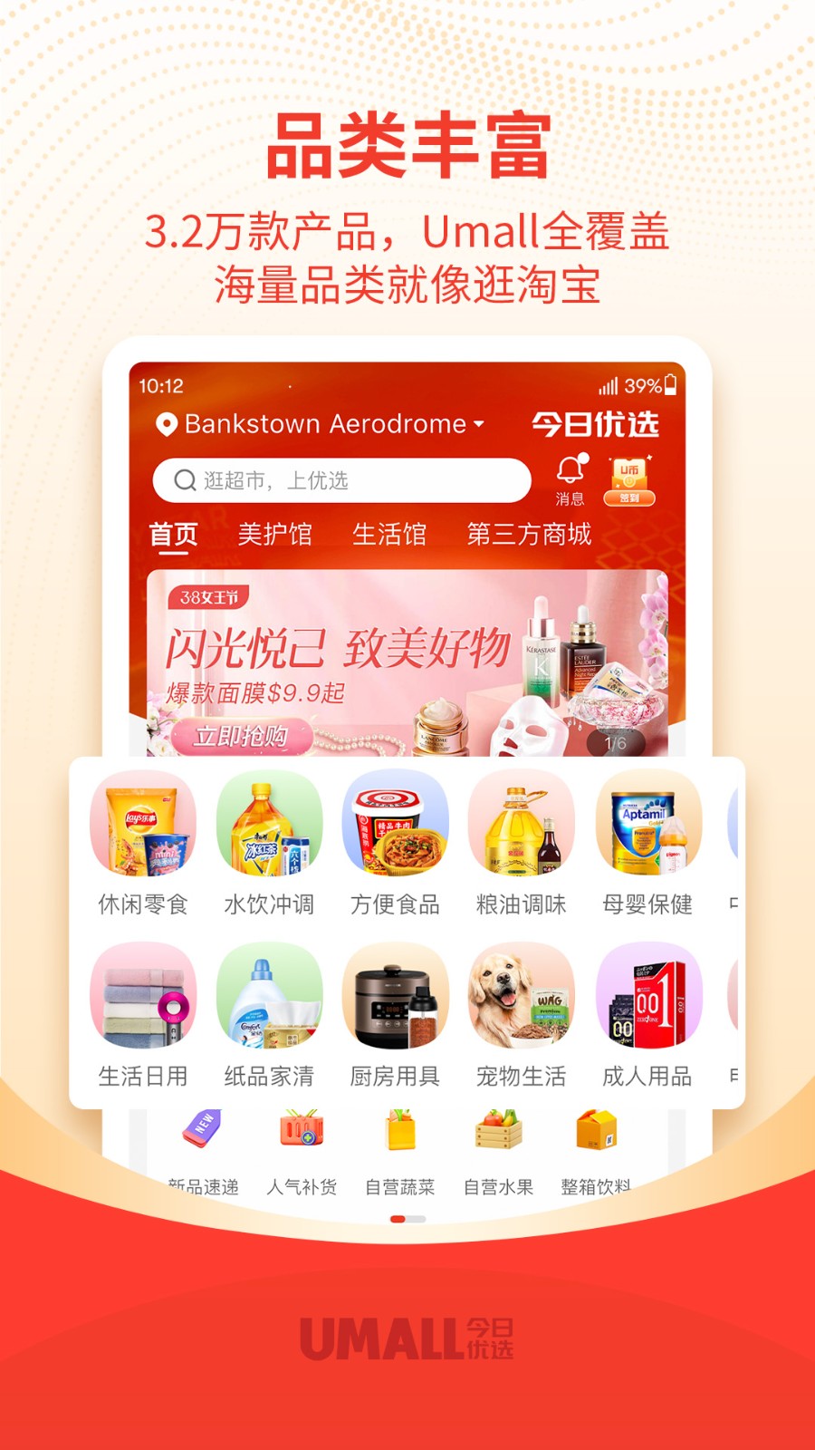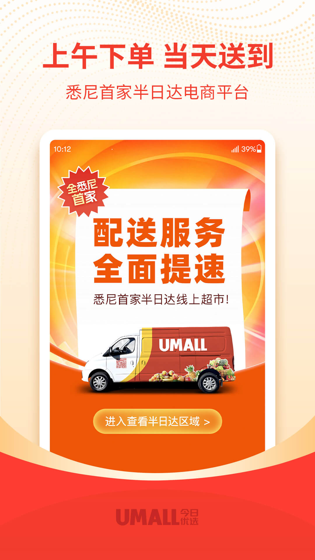 umall今日优选app是澳大利亚今日传媒集团旗下电商,我们为消费者提供在线购物服务,足不出户可以买到你在澳洲线下超市里所有产品,包括水果蔬菜、肉禽蛋鲜牛奶酸奶、鲜肉冻肉、生猛海鲜以及各种冻货。同时,还有各种零食、饮料和生活用品等。更重要的是,我们保证下单当日送达到家,价格还比传统超市更便宜。澳洲逛超市,上优选!