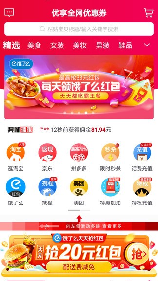 优享乐购app是拥有更多网购优惠活动的平台,各种有劲爆的折扣以及惊喜的返利活动,手机上直接下单享受对应的优惠活动,而且每一件商品都会有质量保证,可以让用户们都能买的特别的放心无忧,日常所需的商品都能在这买到了!