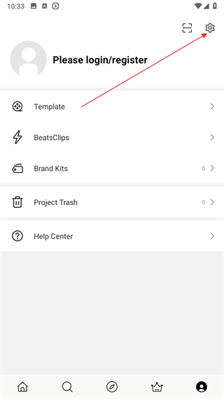 1、打开vn视频剪辑应用,进入个人中心页面后,点击设置图标。