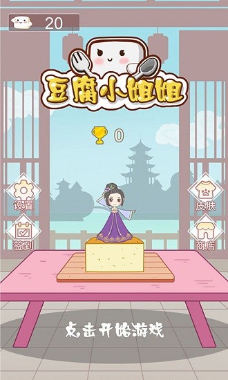 是一款古典画风,ui简单清新,符合现代女性审美风格的游戏。游戏玩法是点击屏幕让小女孩通过跳高,获得更多的积分及金币,解锁各类精美皮肤。火爆全网的豆腐女孩,更富挑战性和趣味性,让玩家们欲罢不能。