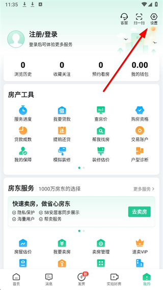 1、打开安居客app,在我的页面点击右上角设置图标。