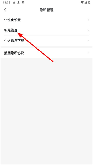3、在隐私管理页面里,选择权限管理选项并点击,进入对应权限的管理界面。