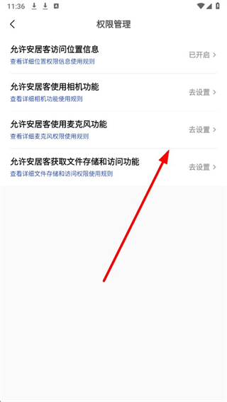 4、在权限管理页面,可对多项权限进行设置,点击对应权限后的去设置即可调整权限状态。
