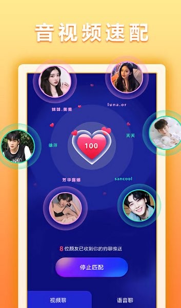 2、年轻男女的汇聚地,真人检测的,通过视频。语音以及性格进行匹配,这些信息在动态中还能够观察到很多的,匹配到妹子的时候,轻松跟对方打招呼。