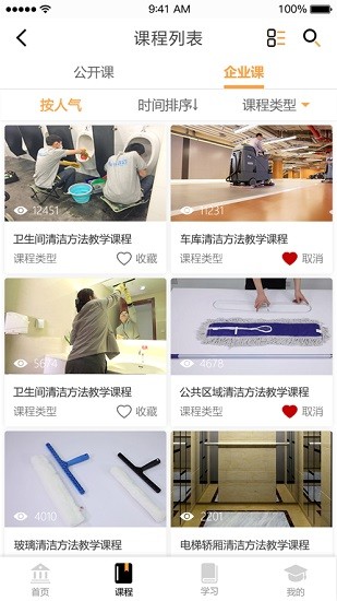最小单元清洁工具使用教学,到基础设施分步清洁教学,全流程精细化递进教学,使学员更快成为专业清洁师。