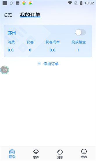 吉智投是服务于房地产营销信息投放的软件平台,通过它你可以选择全国几十个城市创建订单,投放楼盘,它会实时统计数据,消费、获客、获客成本在线显示,做到心里有数,合理安排后续投放营销任务,同时可以统计客户情况,包括今日客户数、昨日客户数、七日客户数,清晰直观,快来下载吧!