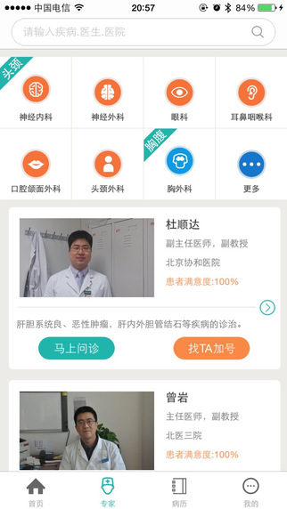 全国顶级名医尽在掌中。专家号是由全国排名前十科室专家提供在线咨询的移动医疗平台。专家号让您足不出户,就可直接与国内顶级专家交流,获得专家的专业解答。只要您通过手机,将病情和检查资料上传,专家就会“耐心、细致、专业精准”的进行回复。