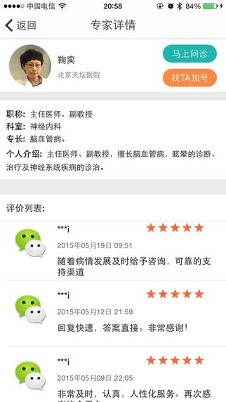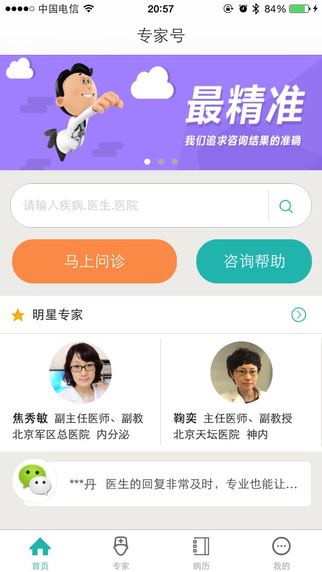 “专家号”专家平均回复时间在4-8小时之内,最快回复3分钟。