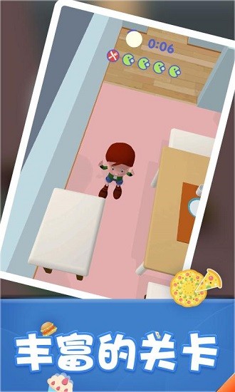 疯狂吃货是一款休闲类的手机游戏,你在游戏中扮演一名小男孩,在你睡觉起来之后,肚子突然就饿了,你非常想吃甜甜圈,于是你家中开始寻找了起来,你必须找到散落在家中的甜甜圈并填饱你的肚子,你还在等什么呢,快点来下载玩玩吧!