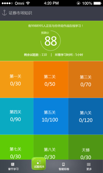 考试通是一款对于证券、期货、银行、会计等金融从业智能学习平台,以评测学习者分数为主推荐最适合你学习的学习方式,让你快速加强练习从而通过考试!