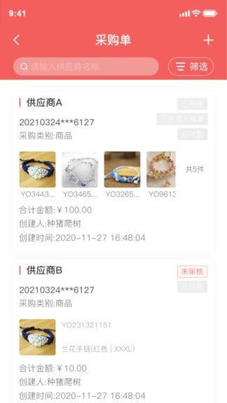 1、支持查询进货价格,可完成进货入库、进货退货等进货业务;