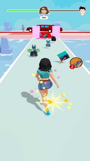 1、玩家在游戏里扮演一位可爱的女孩,一路跑酷收集化妆品改造自己,总的来说很适合打发时间。