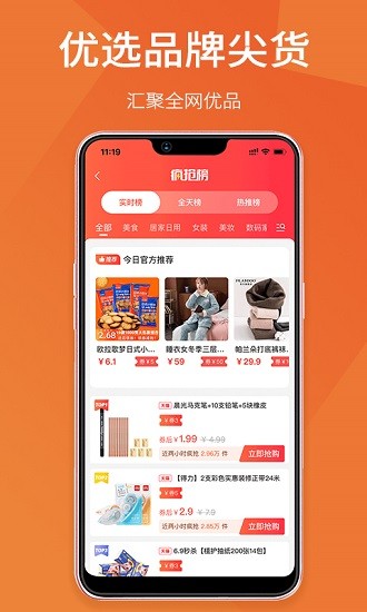 2、每个人可以从疯抢榜之中挑选商品,实时榜、全天榜和热推榜的榜单更新不断。
