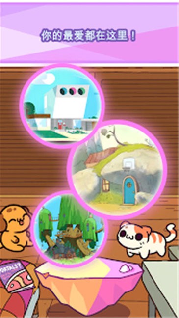 3.你可以在游戏中和小猫咪来进行互动,还能够派出它们到卡通世界中给你带来各种神奇道具