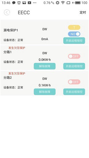通过该客户端可以远程控制电箱分路的开关,确保了对家里的用电情况进行实时控制。