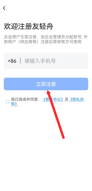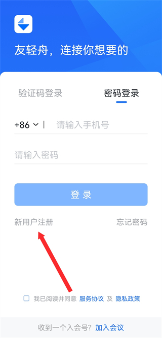 1、打开智悦轻舟APP,在登录界面点击新用户注册。