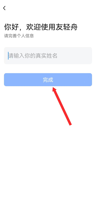5、完善个人信息,输入真实姓名后点击完成,完成账号注册。