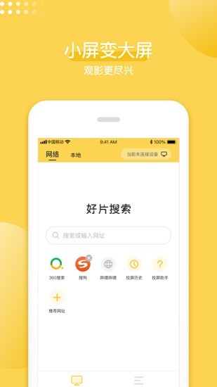 手机投屏神器多功能投屏工具。不仅可以投屏本地的文件到大屏幕,还能在软件内搜索各种影视剧资源进行投屏,不会占用你手机原本的内存,一键云播进行投屏,让你享受大屏幕观影的快感。多个屏幕实时传输的画面延迟也是蛮低的,基本满足日常使用的需求。欢迎有需要的朋友下载使用!