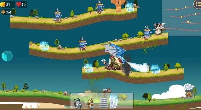 -也可用于躲避怪物的攻击。箭塔除了正常攻击外,升级后的塔,高处的弓手也可射击其他怪物。一个关卡可以有很多种方式通过,升级一些属性是通过后期关卡的必要手段。游戏中有很多彩蛋,也许我也没有发现,