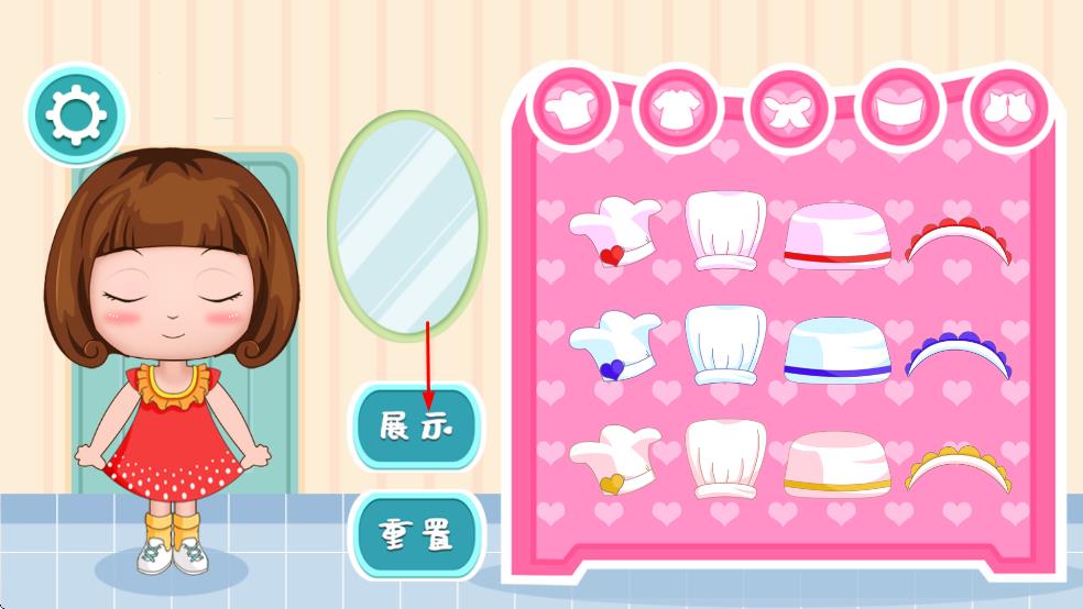 1、在游戏主界面点击粉色的播放按钮,进入贝贝公主的装扮选择界面。