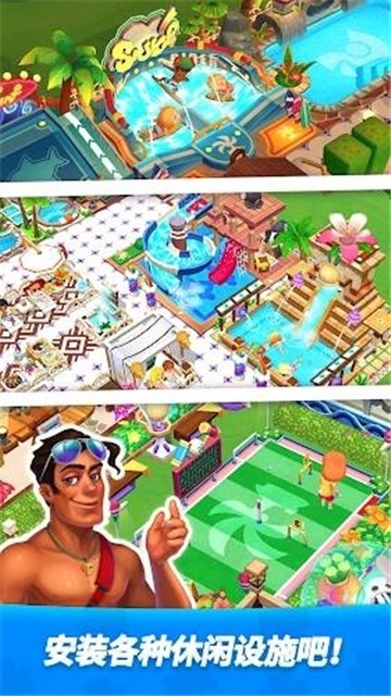 一款清晰独特卡通风格的经营养成游戏,玩家们需要在梦幻岛之上打造大型的度假乐园,全新的经营模式,规划好各一块土地的功能,打造泳池,滑梯,沙滩,游轮,钓鱼等多种项目,为每一个进来的客人提供舒适轻松的服务,赚取更多的金钱,来扩大整个小岛的面积。