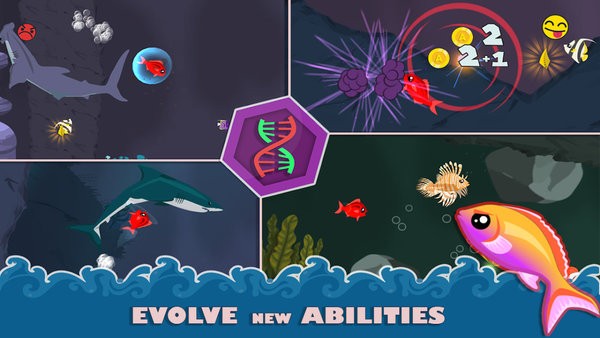 3、吃掉比自己小的鱼类就可以不带的成长,在这个过程中需要格外的小心,躲避大鱼的攻击。